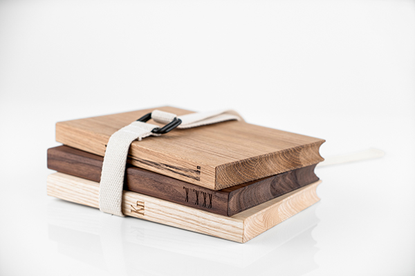 KnIndustrie Glocal KN Book Set 3 Taglieri in legno noce canaletto con cinghia